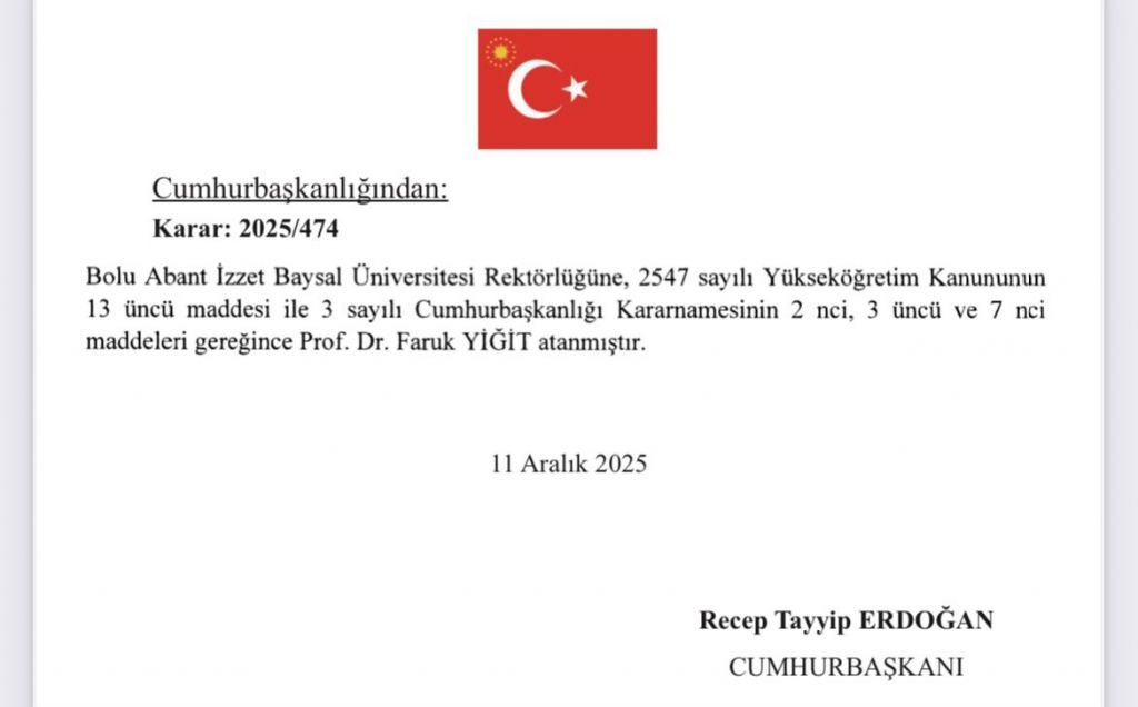 Cumhurbaşkanı Recep Tayyip Erdoğan imzasıyla yayımlanan Resmi Gazete’de üniversitelere yeni rektör atamaları yapıldı. Bolu Abant İzzet Baysal Üniversitesi’ne Prof. Dr. Faruk Yiğit getirildi. Yiğit, mühendislik alanında eğitim almış, akademik kariyerini Türkiye ve yurt dışında sürdüren deneyimli bir akademisyen. Lisans eğitimini makine mühendisliği bölümünde tamamlayan Yiğit, yüksek lisans ve doktora çalışmalarını da mühendislik ve uygulamalı bilimler alanında yaptı. Üniversitelerde öğretim üyeliği, araştırma faaliyetleri ve idari görevlerde bulunan Yiğit, makine mühendisliği, mekatronik ve uygulamalı mekanik alanlarında önemli çalışmalara imza attı.
