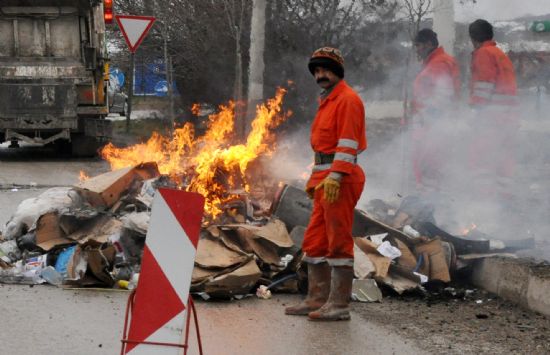 Çöp kamyonunu yanmaktan işçiler kurtardı