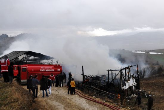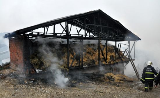 Bolu'da bulunan Hamzabey Köyü'nde çıkan yangında iki katlı ahşap ev samanlık yanarak kullanılamaz hale geldi.