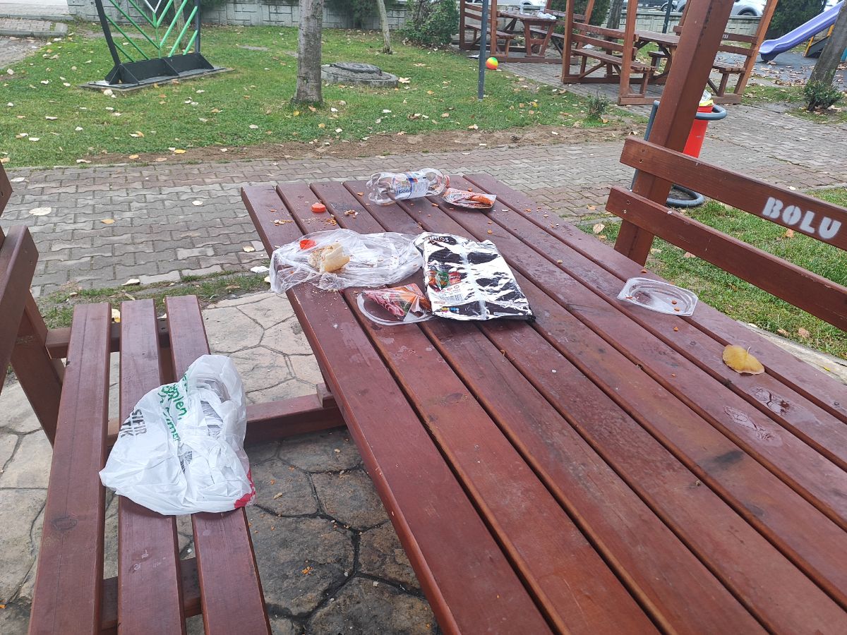 Öğrencilerin duyarlı bir şekilde masalara artıklarını bırakmamalarını, orada çöp kovası azsa 5-10 adım ileri gidip başka bir çöp kovasına artıklarını atmalarını da bekliyoruz...