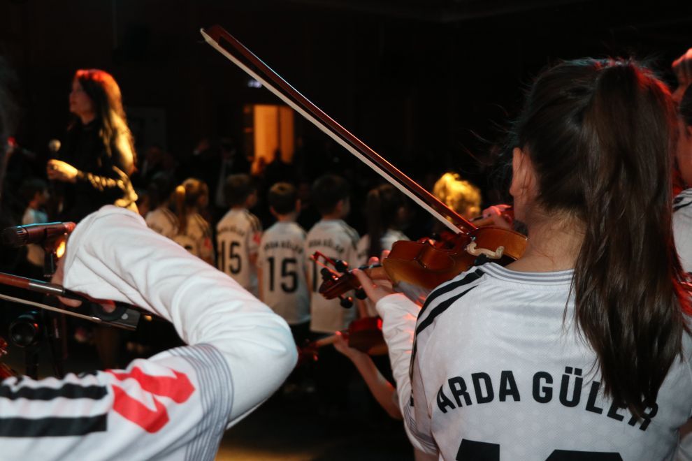 Gecede sahne alan BAİBÜ Çocuk Korosu ile Milli Eğitim Müdürlüğü Arkadaşım Keman Orkestrası öğrencileri, üzerlerindeki Arda Güler formalarıyla unutulmaz bir gösteriye imza attı. İlkokul ve ortaokul öğrencilerinden oluşan grubun performansı salonu dolduranlar tarafından dakikalarca alkışlanırken, "minik Arda’ları" izleyen abla Nurgül Güler ve anne Serap Güler gözyaşlarına hakim olamadı.